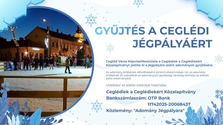 ![]() Cegléd Város Képviselő-testülete a Ceglédiek a Ceglédiekért Közalapítványt jelölte ki a jégpályára szánt adományok gyűjtésére.